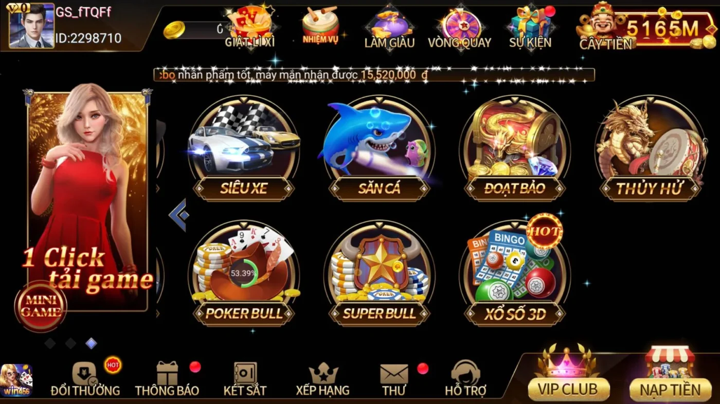 Game bài: Các trò chơi bài đa dạng như Tiến Lên, Xì Dách và Poker.